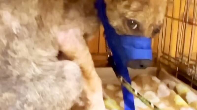TikTokアカウント「__ck1」に投稿されたのは、保護犬「くっきー」ちゃんの衝撃のお姿。とある日のこと、ドアの前に座っているくっきーちゃんですが、おもむろに立ち上がったといいます。