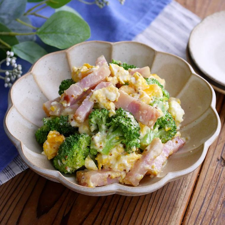 5: 加熱したブロッコリー・ベーコンを加えて、全体を混ぜ合わせたら完成です。