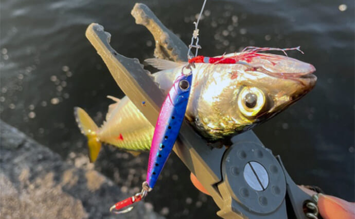 この日困ったのは、サゴシカッターだった。バイトと同時に、ルアーの重量がフッと抜けて、ジグをロストしている。繰り返すこと、3回。もったいないことに、高価なタングステン製のジグまで持っていかれてしまった。どうせなら安いジグを持って行ってくれよ……と嘆きたくなる。