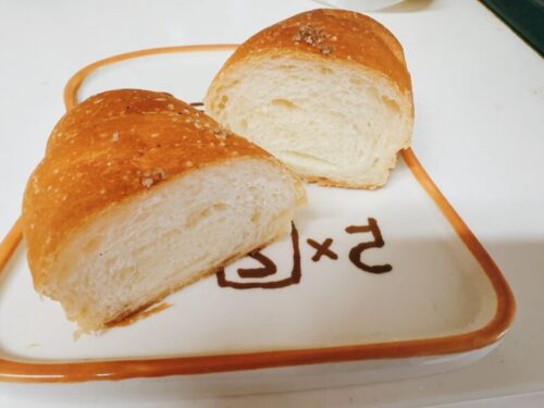 生塩パンは想像以上に底がザクザク! でも中はめっちゃくちゃしっとりしてて、上にかかっている塩がほんと絶妙。 まだ日中暑い日もあるので、塩分欲しくなったら絶対これが優勝です。