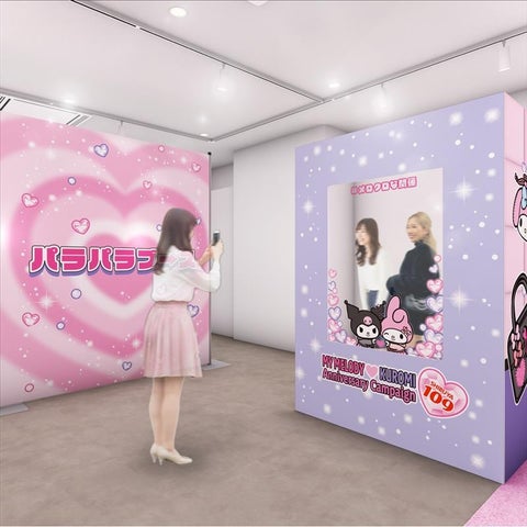 ポップアップスペース内には、マイメロディ、クロミと一緒にSHIBUYA109に遊びに来たような写真が撮れるフォトスポットが登場。カラオケルーム風や平成のプリントシール機風など、「放課後、友達と渋谷で遊んで盛り上がる青春シーン」をイメージした3つのフォトスポットが設けられます。