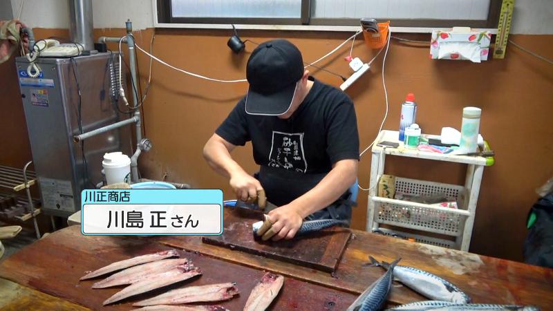 家族経営で創業から約50年という川正商店では、雅子さんと夫の正さんが毎日手作業で砂干しのサバを作っています。