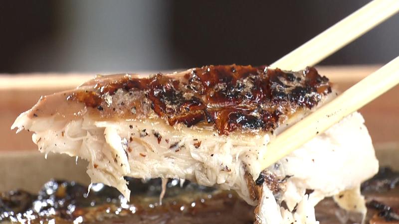 一口食べると、身がホクホクで、脂がたっぷりと詰まっています。そして何より印象的なのが、皮のパリパリとした食感です。