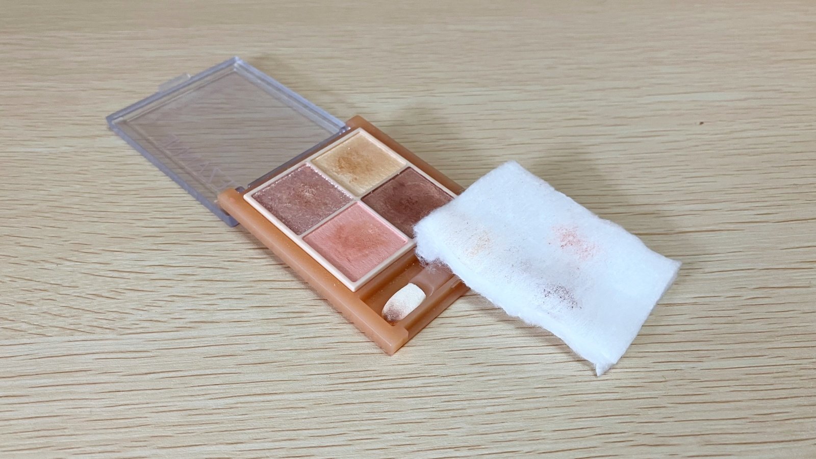方法はびっくりするほど簡単です。その方法とは、アイシャドウの上に、ふわっとコットンを1枚挟むだけ。