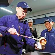 11時前に納竿し、会場に戻った。すると花村さんがワカサギの天ぷらや空揚げ、豚汁をふるまってくれた。