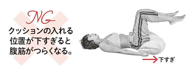 NG:クッションの入れる位置が下すぎると腹筋がつらくなる。