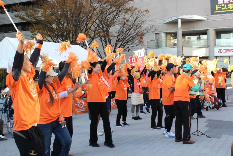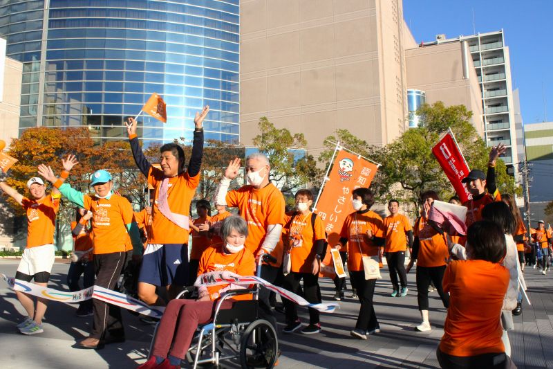 それぞれの参加者は午後3時ごろ、四日市市総合会館で合流。温かさと優しさを象徴するオレンジ色のシャツを着た集団は、今回初めて、一番街商店街のアーケードを通り抜け、近鉄四日市駅北のふれあいモールから市民公園へと入って最終ゴールした。ここ数年では最も青空に恵まれたともいえるゴールになり、参加者たちは、思い思いに大きく手を挙げ、ゴールのテープを切った。