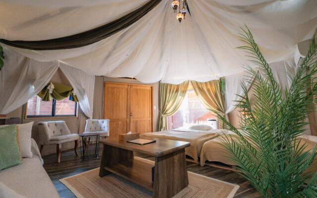 上質な素材が、グランピングテントの空間をさらに格上げ。