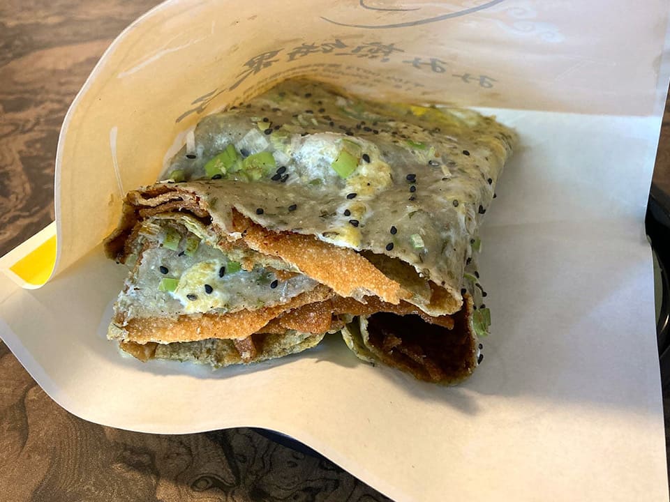 入店すると中国系の店主らしき方から「煎餅といってもお菓子ではなくごはんです」と説明をいただきました。