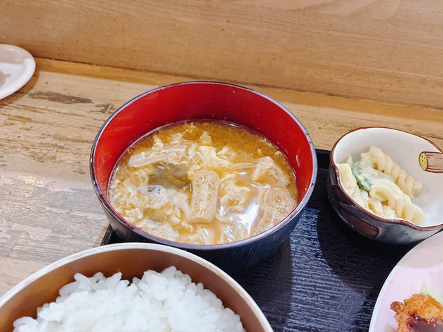 お椀が大きく、中には揚げやワカメなどの具材がたっぷり!手抜きのなさを感じる一杯に、心も体も温まりました。