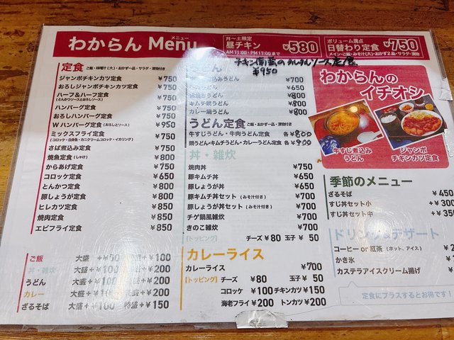 日替わり定食750円、さらに昼チキン(ランチ限定)に至っては580円!?