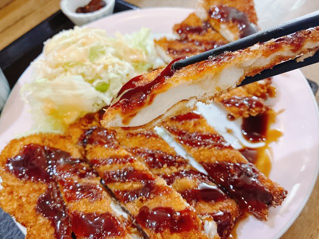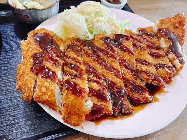 実食!皿からはみ出る「ジャンボチキンカツ定食」