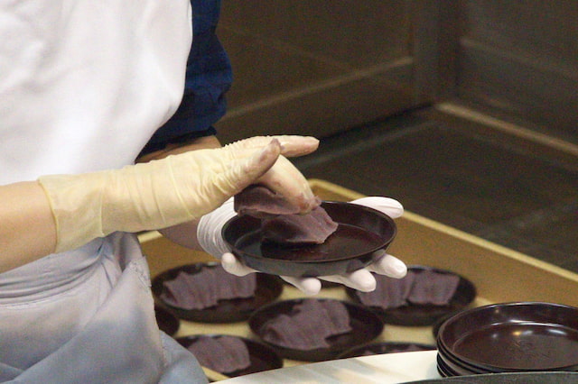 「赤福」本店の「赤福餅」実演風景