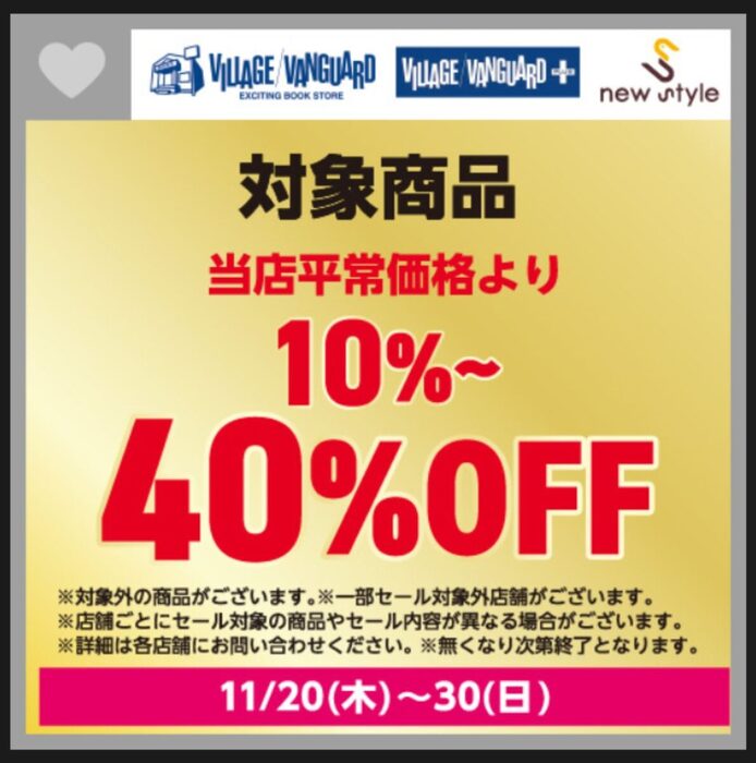 3階『ヴィレッジバンガード』では最大40%オフのセールを実施。