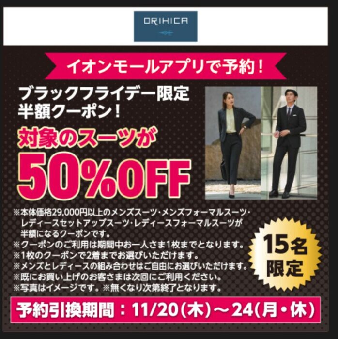 2階『ORIHICA(オリヒカ)』では、対象スーツが50%オフ!
