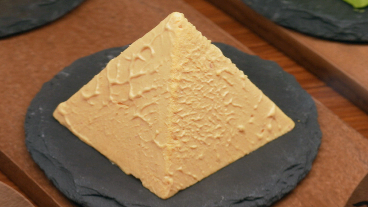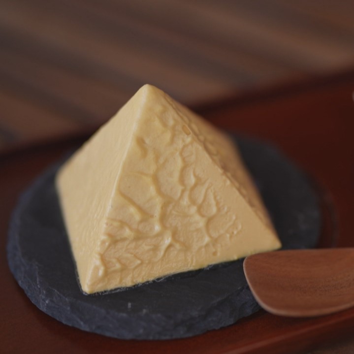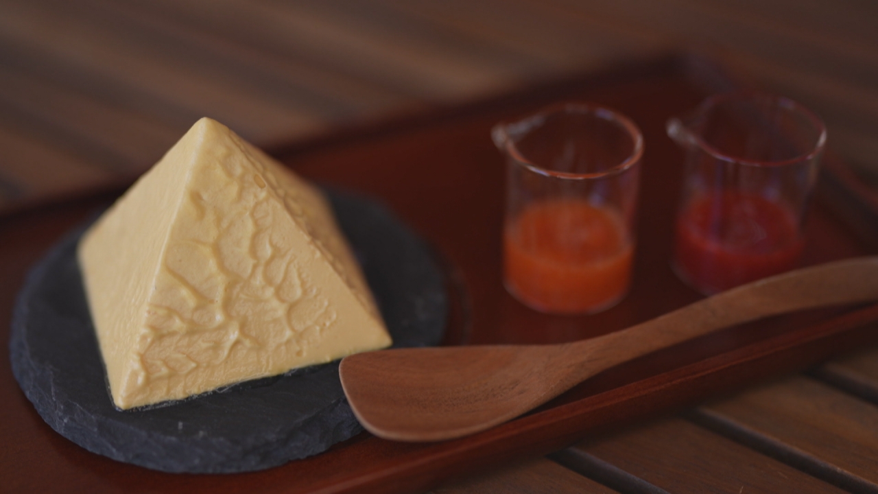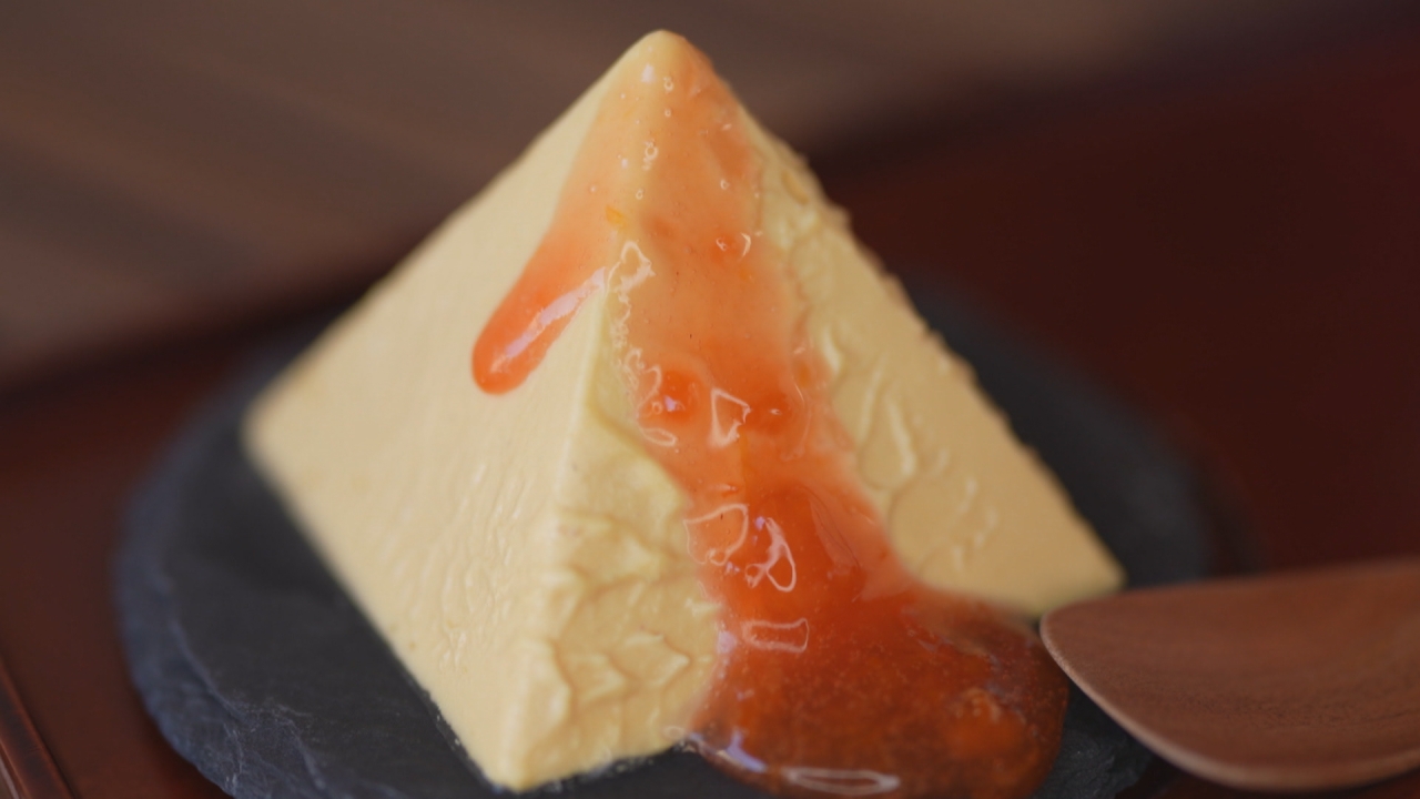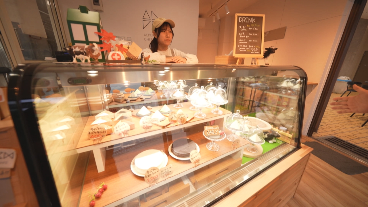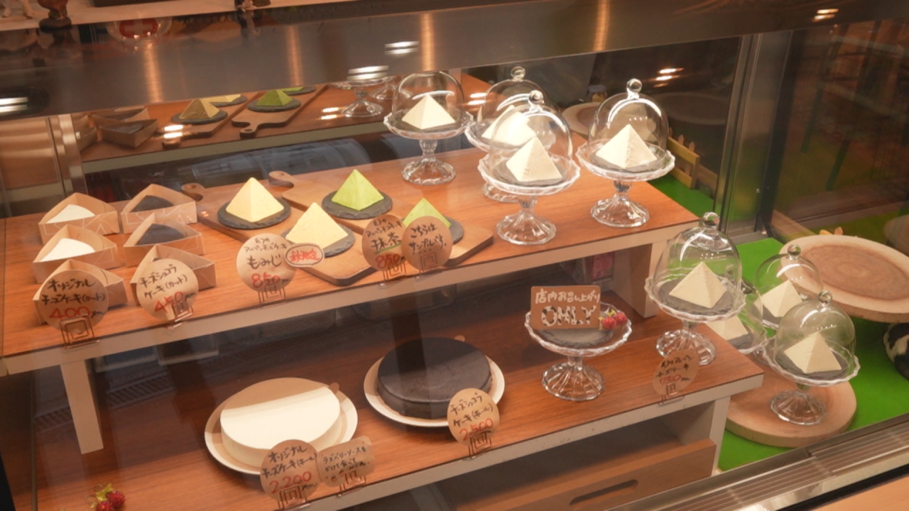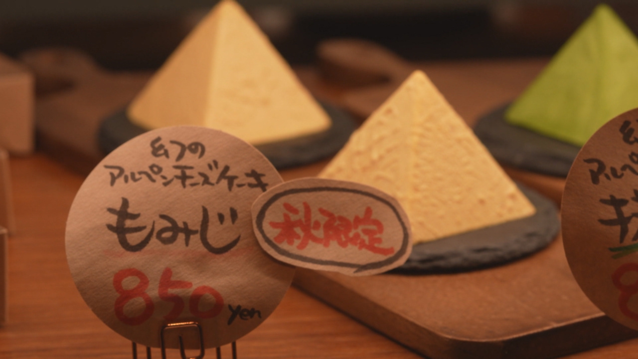 店の名前にもなっているピラミッド型の「アルペンチーズケーキ」は、地元・黒部産の牛乳を使用していて、見た目は雪のように真っ白。