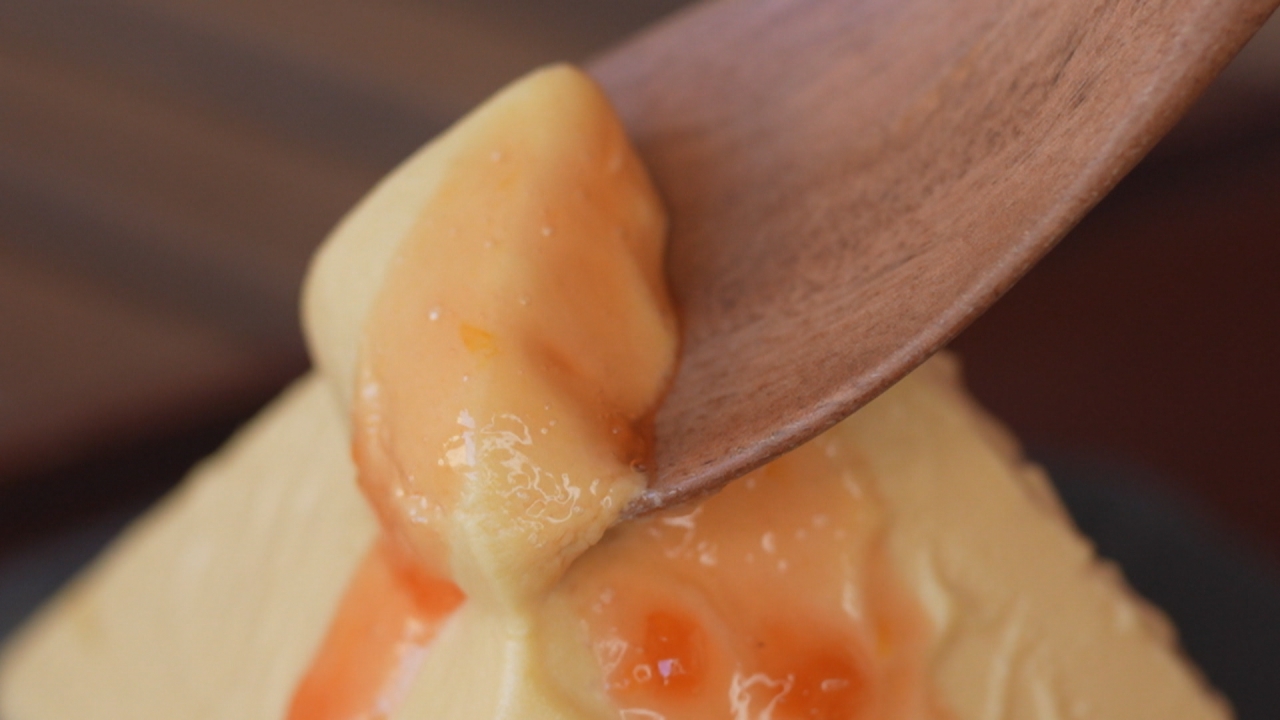 スプーンですくうだけで崩れてしまいそうなやわらかさに驚かされますが、口の中に入れると、その瞬間にすっとほどけて濃厚なチーズとフルーツの風味が広がります。