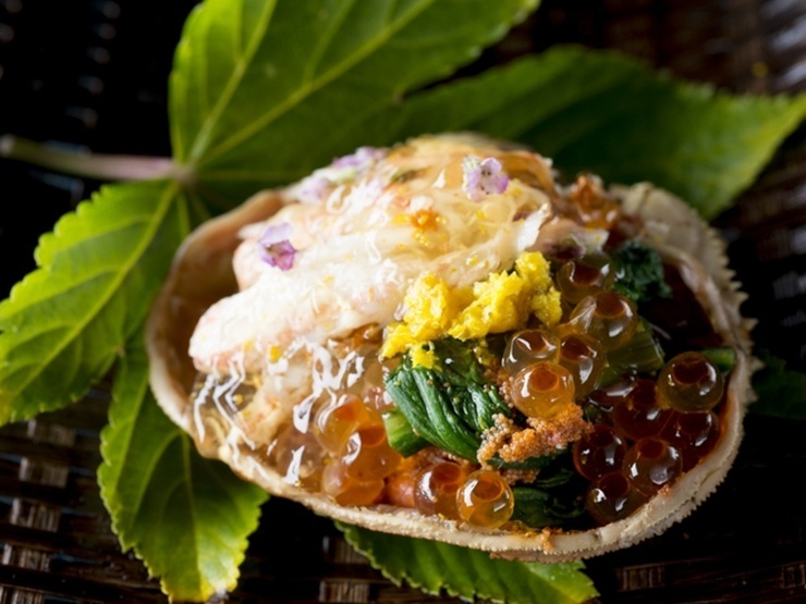 金沢駅から徒歩2分の【fuki】は四季折々の素材を使用した日本料理をコースで堪能できるお店です。メニューは、全10品が味わえるコース料理のみ。コース内容は日によって変わりますが、例えば、北陸有数の漁港で水揚げされた魚介の『刺身』や、鮮度のいい蟹を使った『蟹のあんかけ』など、一度は食べてみたい素材の旨みを活かしたメニューが並びます。