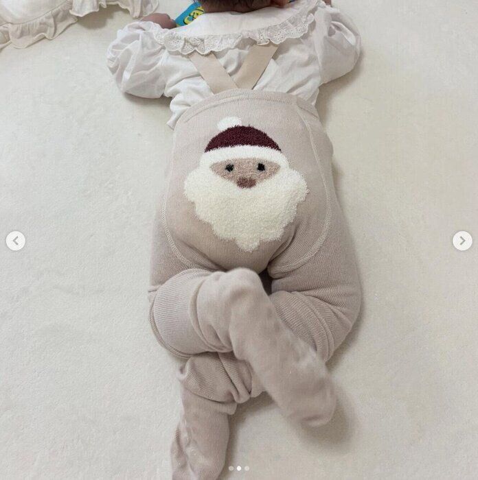 _i.am._.fukaさんのお子さんが着用しているのは、お尻にふわふわのサンタがデザインされているタイツ。足裏にはすべり止めがついていて、機能性もバッチリですよね。「600円(税込660円)でこの可愛さ」と、クオリティの高さに大満足のようです◎