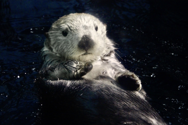 ぷかぷかと水面に浮かぶラッコ。まるでぬいぐるみのようにかわいい姿には心が和みます。
