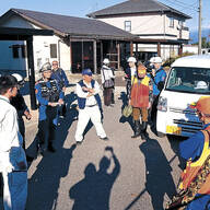 ある日の早朝、日原街道を走っていると、寺地集落の手前で数匹の野猿が道路を塞いでいた。車を徐行させると、猿たちは臆することなくこちらを見返してくる。