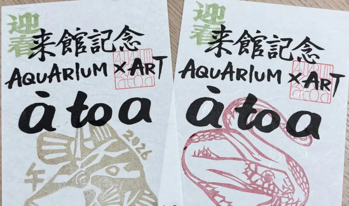 12月12日、神戸市中央区の『AQUARIUM×ART átoa』で干支にちなんだ企画展「午く作れるかな? 馬にちなんだ魚で福笑い」と復刻「謹賀新年 白蛇祭」が始まります。2026年1月26日まで。