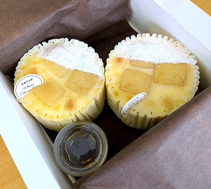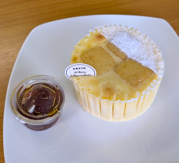 ◆中澤星児☆ GASTA「ホワイトチョコレートバスクチーズケーキ」税込1150円、メープルシロップ 税込150円