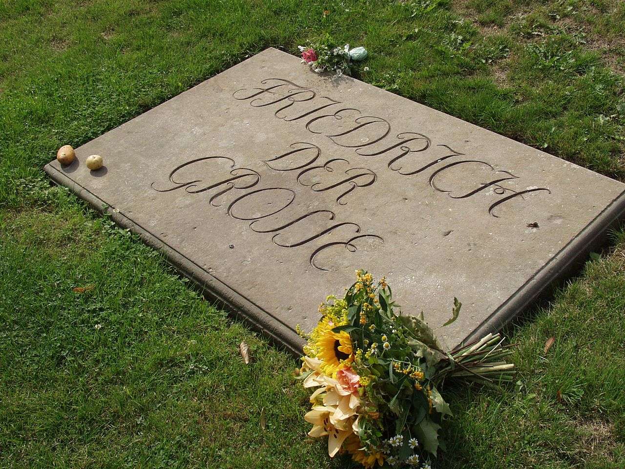 1786年8月17日、サンスーシ宮殿で息を引き取る際、フリードリヒは「愛犬たちのそばに葬ってほしい」と願いました。