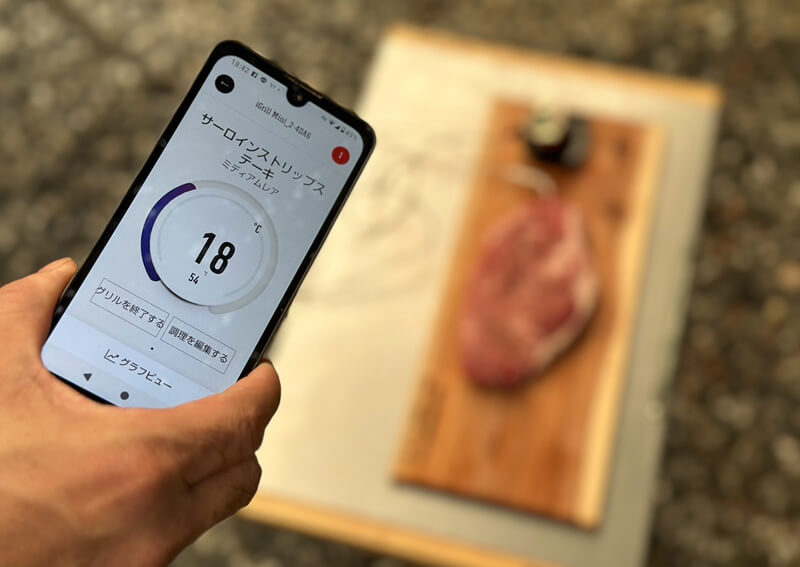 iGrill Miniで中心温度をリアルタイムに確認。焼き上がり前に注意表示が出る