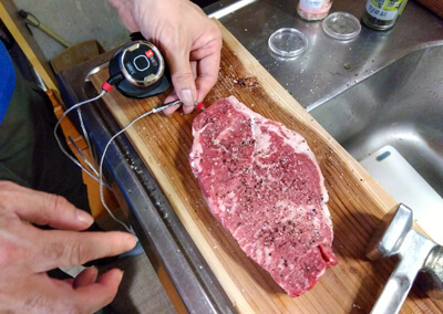 ⑤iGrill Miniのプローブをステーキの中心に挿す