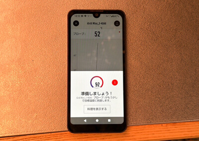 ⑥焼きながら温度を見る。アプリで温度チェック。設定温度になったらアラーム