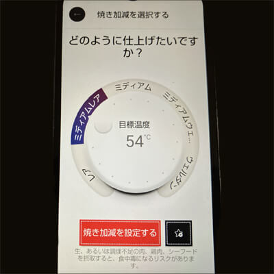⑤アプリで温度設定。肉の種類や焼き加減を選ぶ