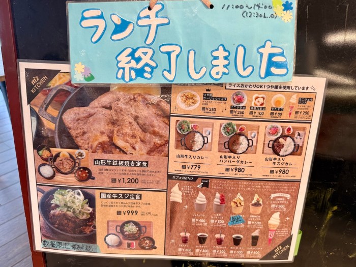 さて、狙っていたのは冒頭でも触れた店内レストラン「エムズキッチン」だ。山形牛の鉄板焼きランチをリーズナブルに楽しめると評判で、牛スジカレーも人気。地元客はもちろん、わざわざ訪れる観光客も少なくないという。期待値は高まる一方だった……