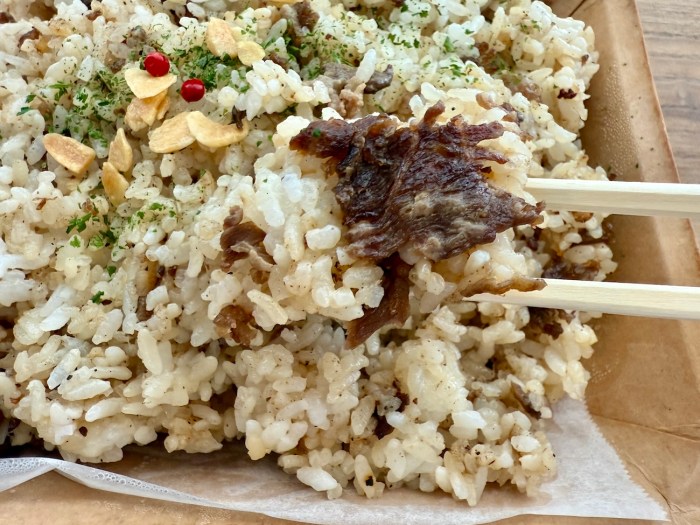 ビビる……一言でいえば、鉄板ステーキ店の本格ガーリックライスをテイクアウトしたかのような完成度。