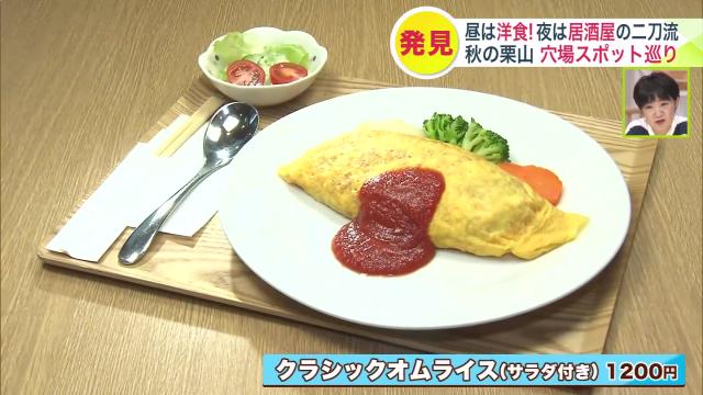 定番の「クラシックオムライス(サラダ付き)1200円」は、卵がケチャップライスを上手に包んでいて、卵の味とケチャップライスの味がバツグンです。