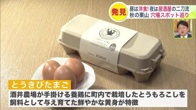 「モンテマローネ」が手がける全てのオムライスに使っている卵は、町内にある酒井農場の「とうきびたまご」。エサにとうきびを与えて育てた鮮やかな黄身が特徴の卵を使っています。