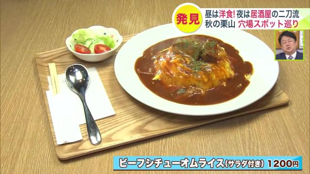 続いて向かったのは、「ブンナタッタ」から車で5分のところにある町内で唯一の洋食店。昼は洋食、夜は居酒屋に変わるという一風変わったお店です。「町内の卵とお米を使った料理が絶品」と原田さん。