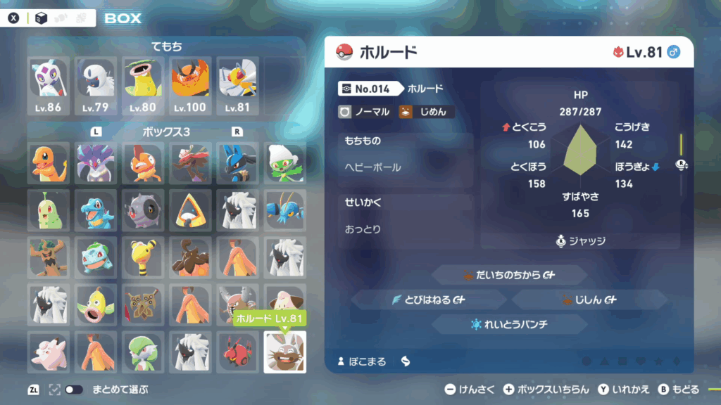 これらのポケモンは共通して3V確定となっています。
