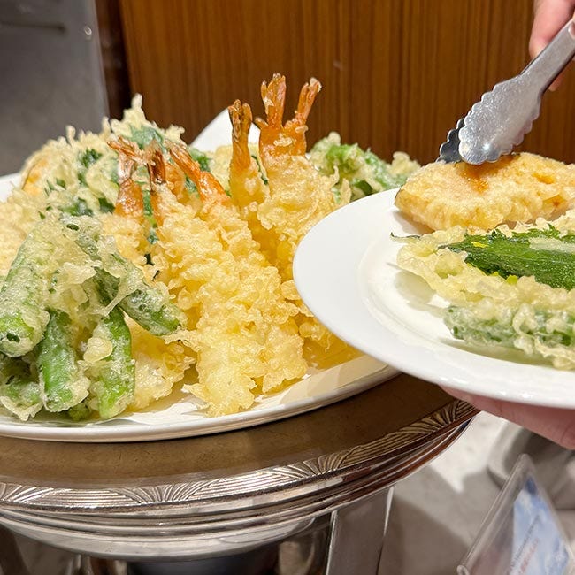 今回のビュッフェでは、「海老と野菜の天ぷら」もいただけるんです。