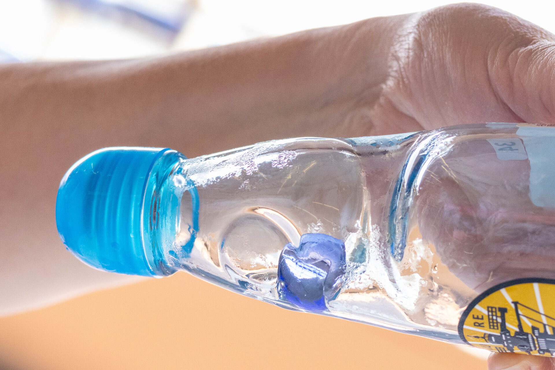 ちなみに、瓶のくぼんでいる部分にビー玉がハマるようにして飲むと、凹みがストッパー代わりとなり、スムーズにラムネが飲めるので、試してみてください。