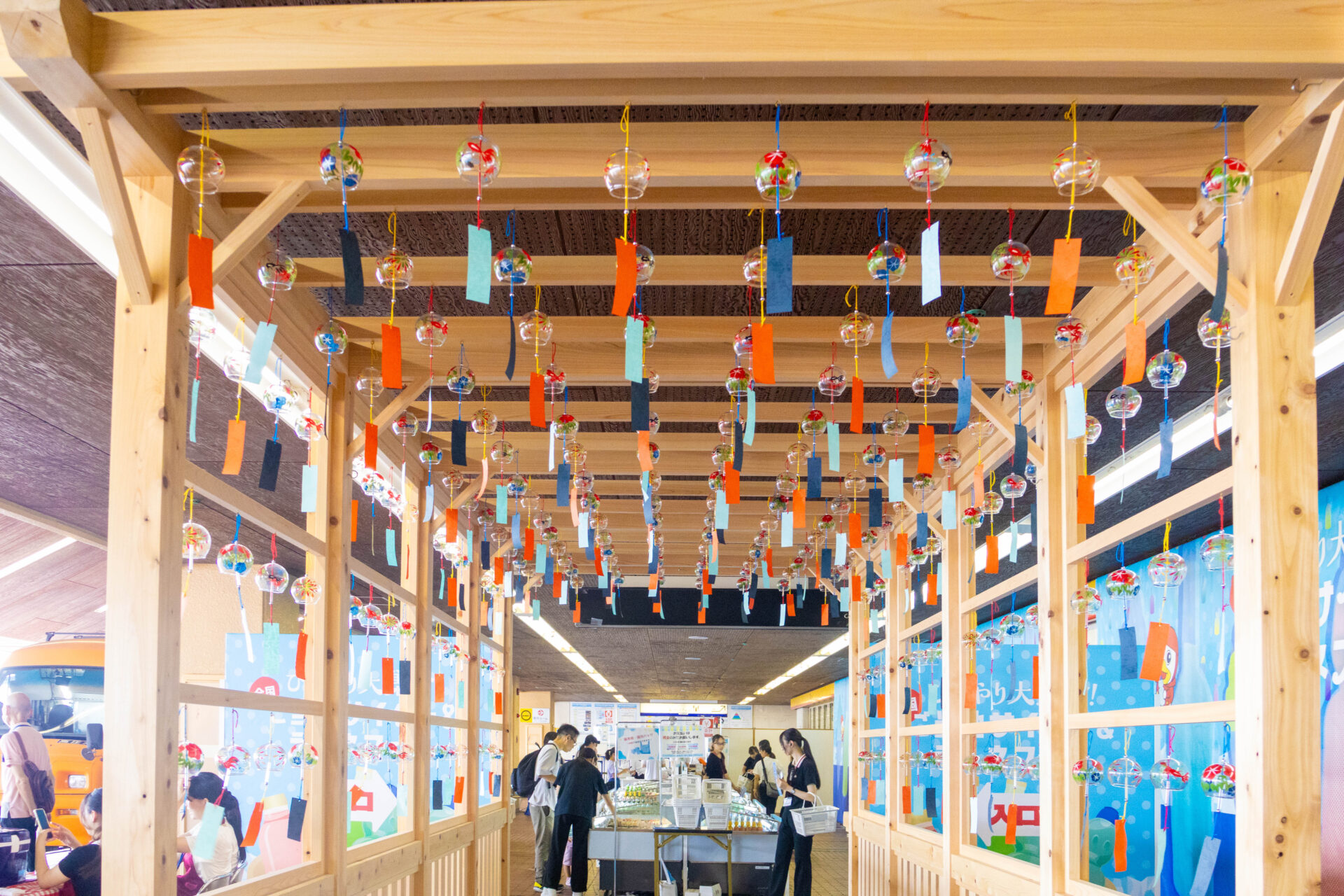 色とりどりの風鈴がゲートになっていて、涼し気な見た目と音のきれいさに暑さが一気に和らぎます。