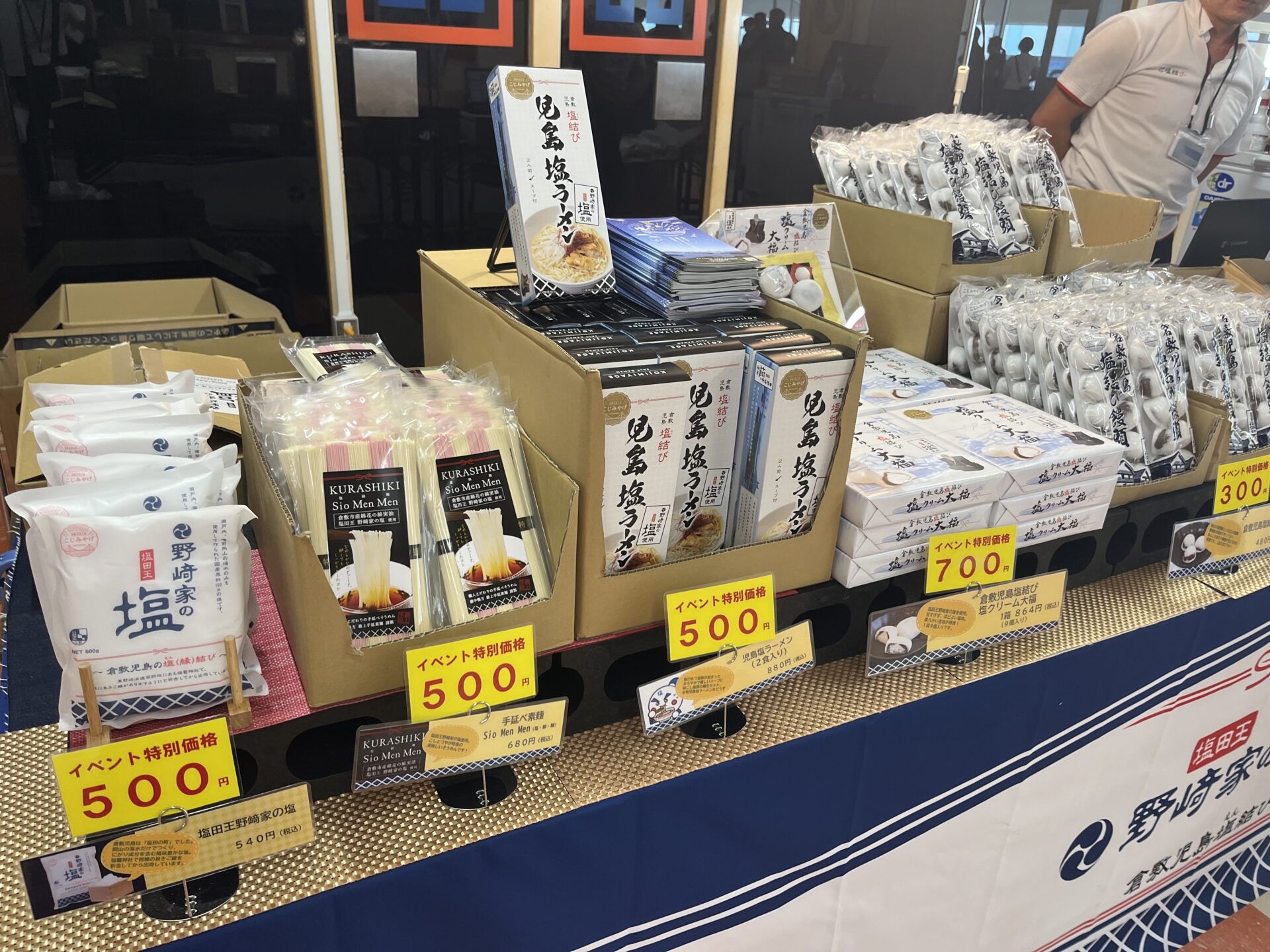 こちらのブースでは児島の塩を使ったさまざまな食べ物が販売されており、児島のお土産にぴったりな商品が並んでいます。イベント価格でお得だったので、筆者も自分土産にそうめんを購入しました。