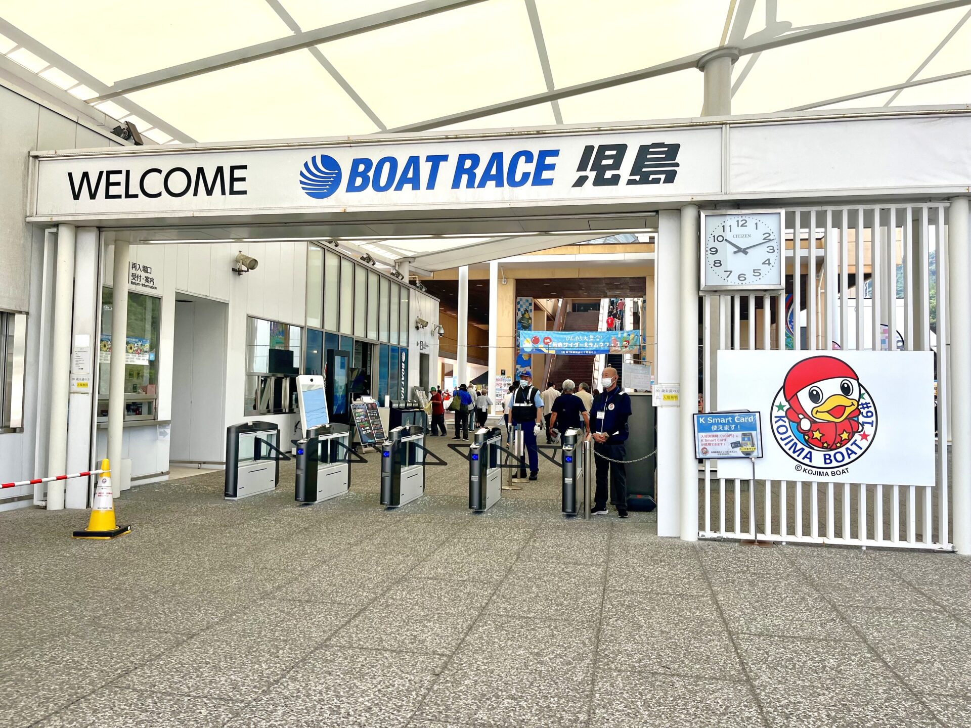 まずは入り口で入場料100円を支払い、駅の改札のようなゲートを抜けてボートレース児島に入場します。