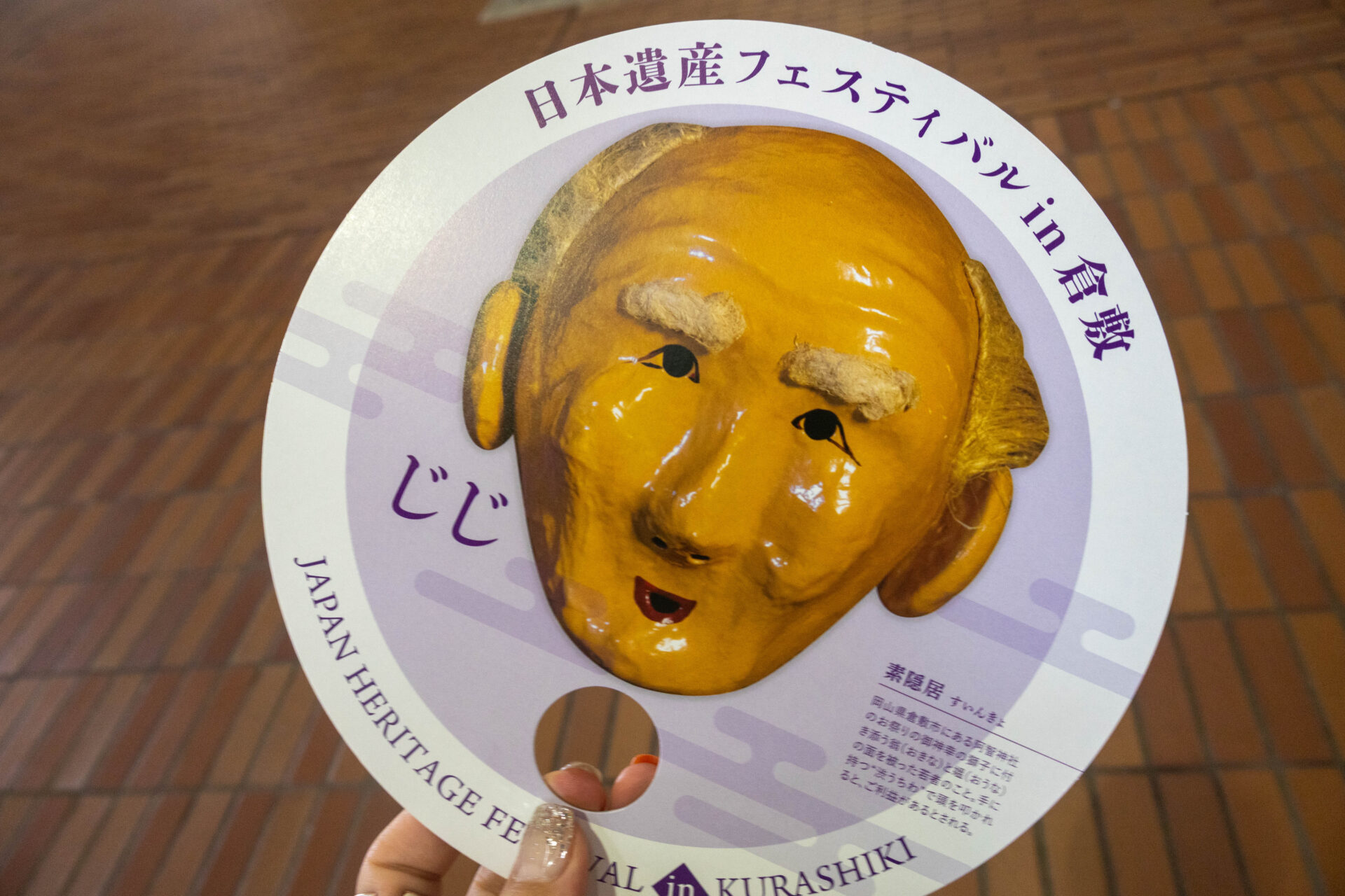 ブースに立ち寄ると、くらしき日本遺産大使で活躍している素隠居(すいんきょ)というキャラクターのうちわをゲットできました。