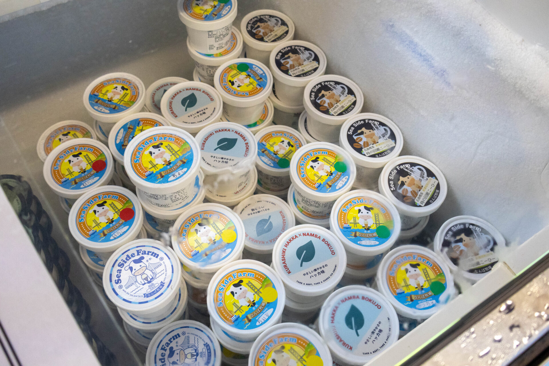 下津井にあるシーサイドファームなんば牧場アイス屋さんのアイスクリームも販売されていました。