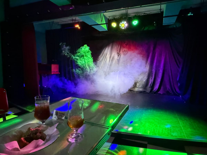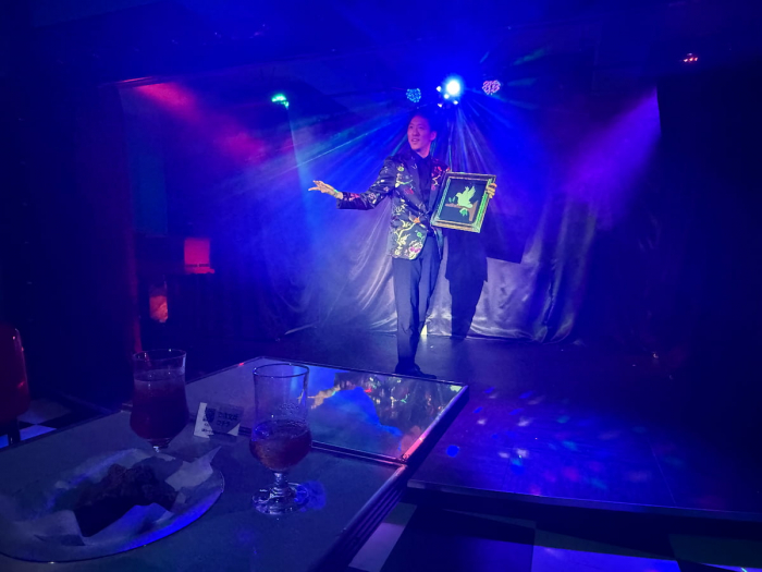 同店のシステムは、入場料+1ドリンク制です。メインはイリュージョンやマジックのステージショーですが、お酒やお料理にもこだわっています。