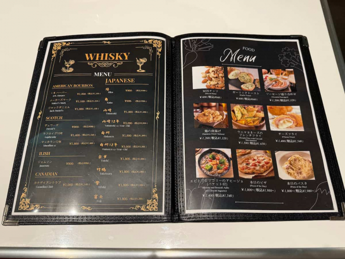 訪問するまでは、ショーの合間に軽い軽食が提供される程度だと思いこんでいたので、本格的なお料理と豊富な種類のドリンクが並ぶメニューをみて驚きました。アルコールが約30種類、ソフトドリンクは8種類が用意されています。