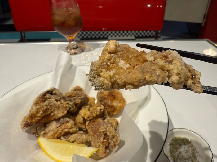 じっくり丁寧に二度揚げされた鶏の唐揚げは、サクサクでジューシー♪ ハーブソルトで大人味です。お子さんや辛いものが苦手な方は、そのままでも大丈夫。しっかりと味が染み込んでいますよ。