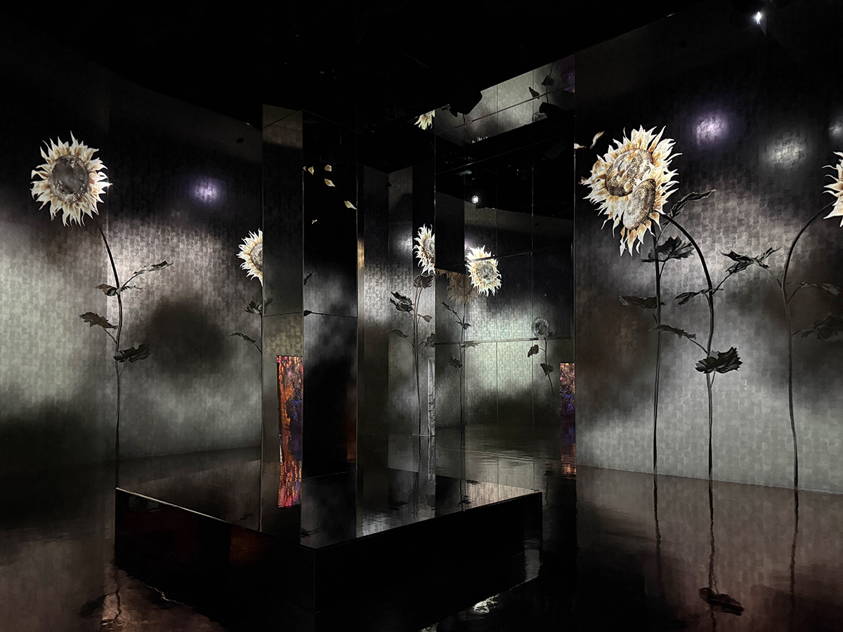 そのほか、無数の球体が宙に舞う《Morphing Continuum》、光と闇が呼応する《質量のない太陽と闇の太陽》、お台場「チームラボボーダレス」にも展示されていた《呼応するランプの森》など、多彩な作品を展開する。