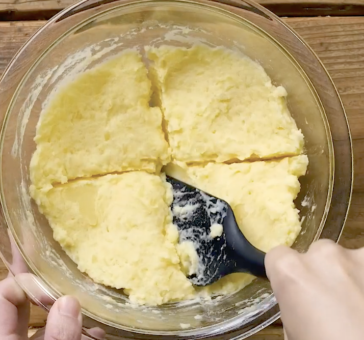 ※熱湯を加えることででんぷんの一部糊化することでまとまりやすくなります。